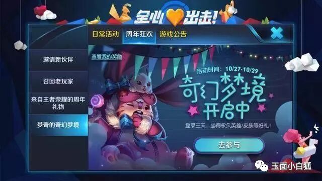 5、奇幻梦境记得参与,这三天内,每天都可以抽奖一次,必有一天会获得永久皮肤、永久英雄、20皮肤碎片,而平常也至少有2个皮肤碎片或英雄碎片保底。