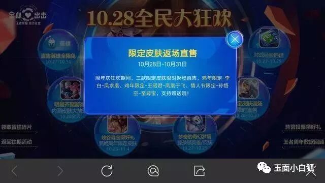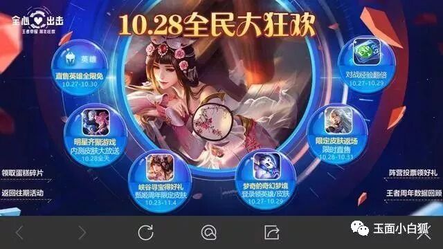 王者荣耀:10月28日活动预览,限定皮肤返场,六个皮肤英雄免费抽