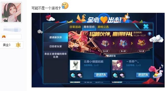 相信这几天有在玩王者荣耀的玩家应该都知道下面这个活动了。