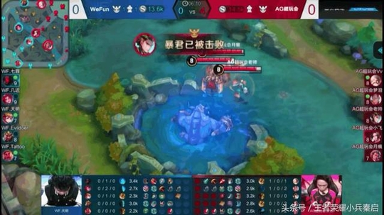 比赛进行到六分钟的时候,AG趁着WF这边芈月还未复活,集合把暴君消灭,上图为老帅击杀暴君的瞬间。