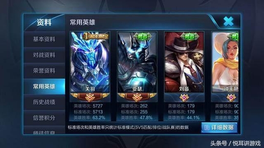 5727的关羽,是不是感觉特别佩服,悦耳敢说,很多人玩的总场次还不到5727,而这位玩家单纯关羽就5727的场次。
