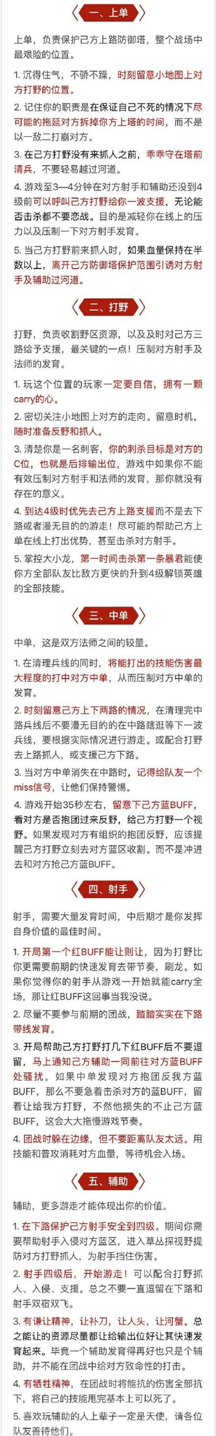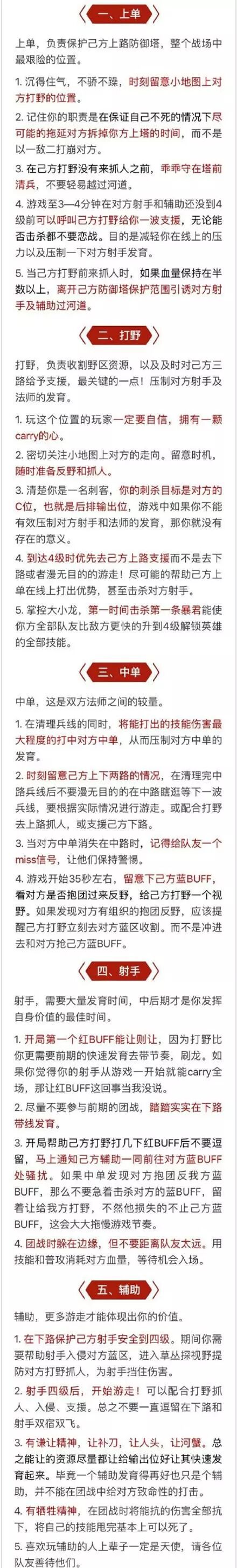 这些都是王者高玩们总结的一些游戏经验,希望能帮助各位在各自的位置上打出亮眼的表现。