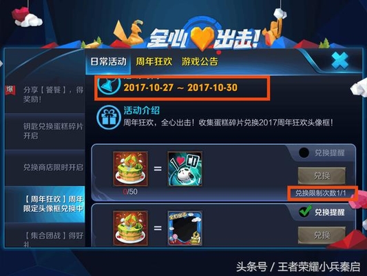 这两天王者荣耀周年庆的活动实在太多,在游戏里面的日常活动页面整整一排下来,有的活动已经被排到最后面了,有的小伙伴甚至会遗忘掉,本篇小编特别提醒一下,蛋糕兑换活动明天下架,也就是31号就要结束了,赶紧把你们多余的蛋糕碎片用了。