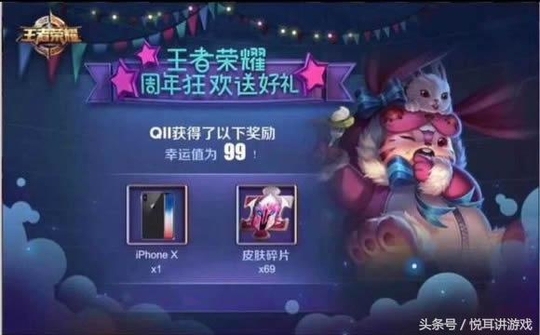 这个才是真好运,iPhoneX和69个皮肤碎片,69个皮肤碎片就能换取2个皮肤了,虽然是最普通的皮肤,不过免费的也就无所谓了,不过,天美这次活动有iPhoneX奖励?