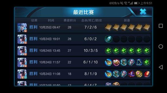 大家可以看到这位玩家几乎全是五排,每一局都是胜利,新赛季开启的第二天就有这样的战绩。最奇葩的是装备,玩露娜出6个提神水晶,玩诸葛出6个咒术典籍,可以看出玩家的死亡率非常低,每一局都拿到五个以上的人头,不知道这位玩家是怎么做到的。