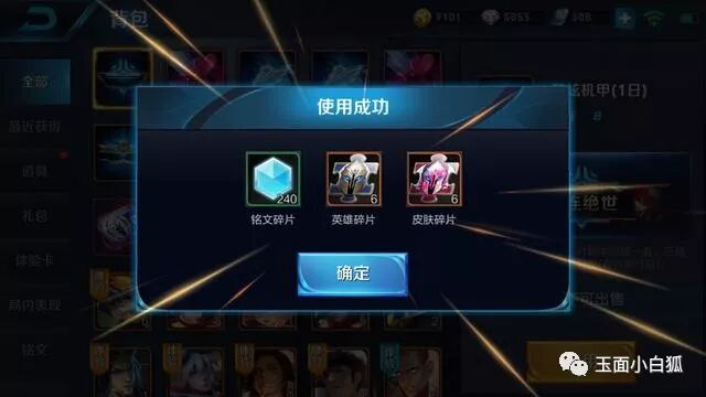 耀(180积分=6个):240铭文碎片+6英雄碎片+5皮肤碎片
