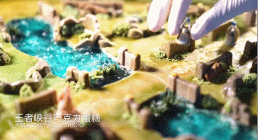 制作王者峡谷蛋糕的创意本身就很不错,制作细节上更是精益求精。下面的河道,波光粼粼,动感十足,知道是水果果冻制作后,又能引起食欲。