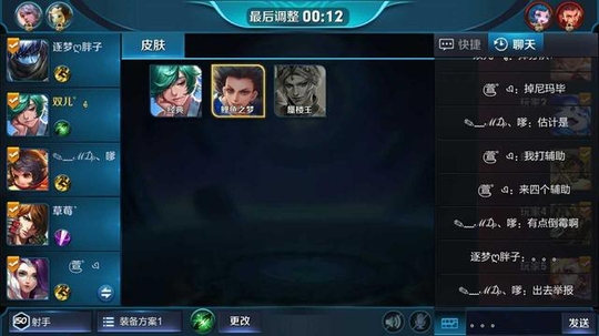 选英雄时李白告诉大家自己练英雄,(看昵称估计是个妹子)这时候庄周忍不住说了一句:又要掉段了。甄姬直接开骂,说自己打辅助,要么来四个辅助。李元芳见况忍不住道:出去举报。