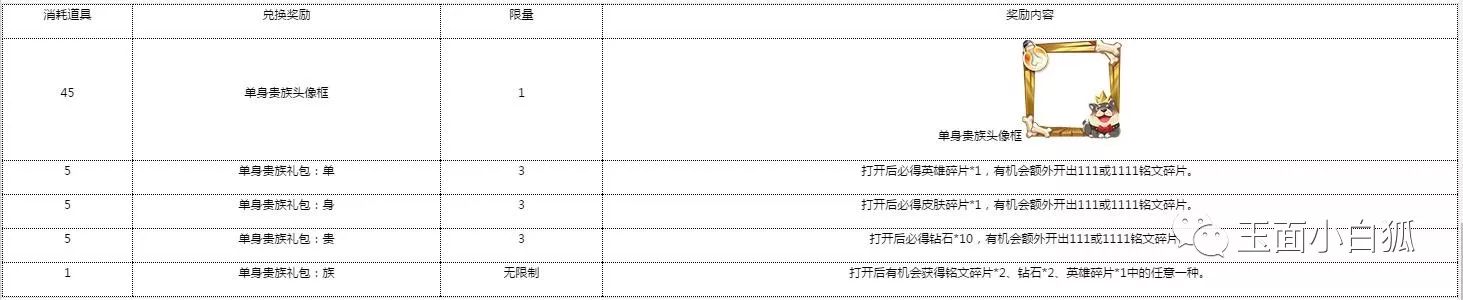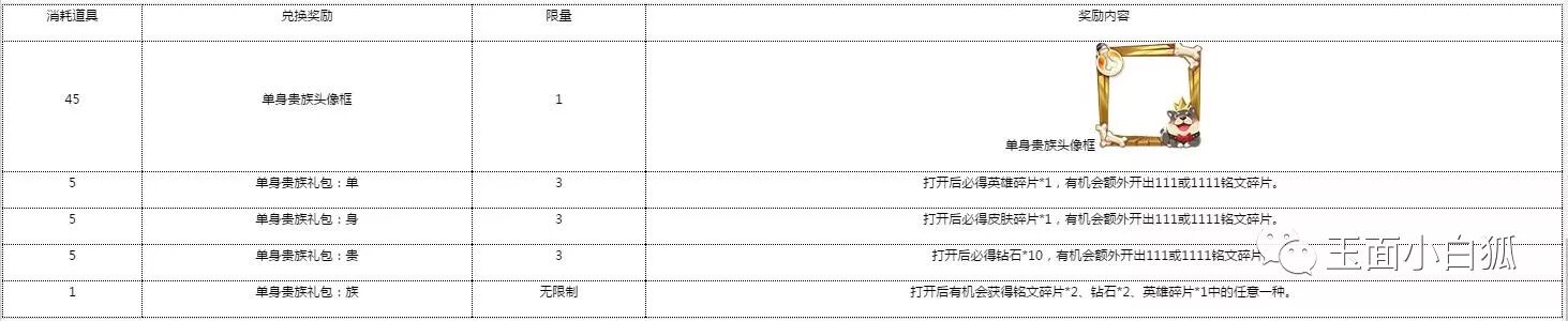 5个电灯泡可兑换“单身贵”中的一个文字礼包,一定概率开出111或1111铭文碎片,每个最多兑换3个;