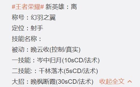 根据爆料,我们只知道她的称号为“幻羽之翼”,是一名3技能英雄,具体技能目前还在制作当中。
