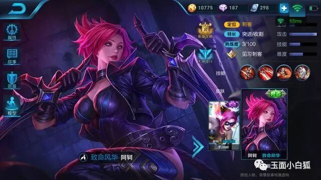 阿轲原有皮肤特效:对比之后发现,和致命风华相比,除了外貌和颜色深浅不一样之外,其他都是一样的。
