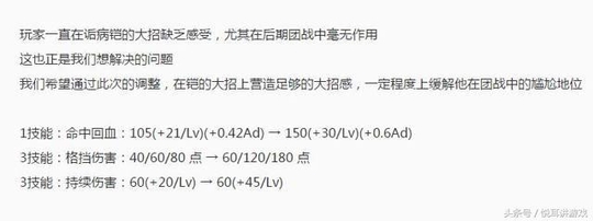 这是全方面都加强了,1技能增加了回血,2技能增加了格挡,3技能增加了伤害,相当于一个英雄彻头彻尾的重做了一遍,这种加强直接让铠浴火重生,原本就不是很弱的铠经过此加强,真正的变成了单挑王。