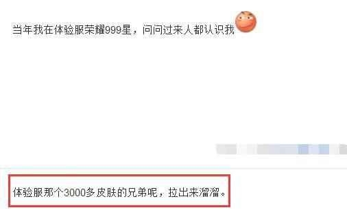 一个说自己曾经卡在荣耀王者999星(这个肯定是BUG了)还有一个说的就是小六说过的体验服3000+皮肤的那个