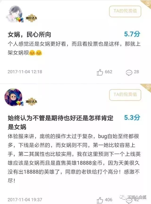 很明显是女娲票数碾压庞统,这票数相差甚远,将近四倍之多,那么女娲上线正式服就是民心所向。不过话题中提到,重新调整上线正式服?庞统重做也并非意外,可是女娲难道还要重做调整吗?以下是心悦玩家对此投票的热评: