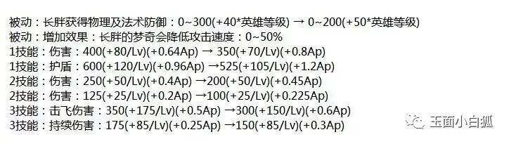 梦奇:所有技能的基础伤害都被降低,增加了法术加成伤害,被动削弱更是拿AD梦奇开刀。梦奇长胖后,攻击虽然增加不少,但是攻速却降低50%,这在对于AD梦奇来说很伤。