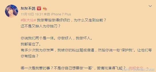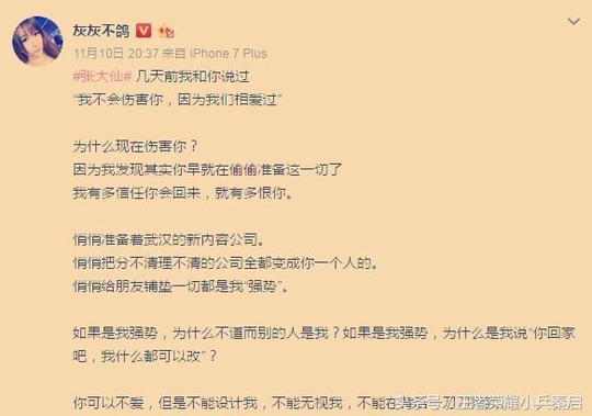 灰灰继续爆料,说大仙可以不爱,但是不能设计和无视,更加不能一刀刀捅我。