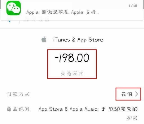 这是玩家充值金额截图,198元,付款方式为支付宝的花呗。