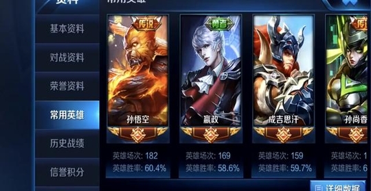 孙悟空地狱火、嬴政暗夜贵公子、史诗级皮肤、KPL限定、买得到买不到的应有尽有。而且大家可以看到玩家的胜率都非常高,几乎都达到了55%以上。