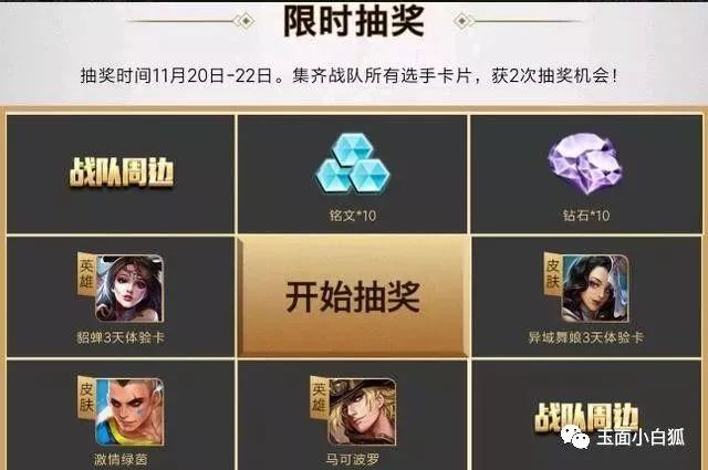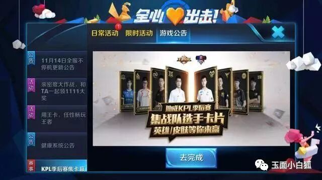 活动指南:游戏内——活动——游戏公告——【KPL季后赛集卡赢奖励】——去完成——选择战队——每日抽卡——收集全部选手卡片——参与抽奖两次