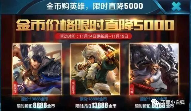 王者荣耀今日将有3位英雄开启降价出售,降价也都是老规矩,每位英雄降价5000金币。之前英雄降价活动只上两位英雄,如今已经打破常规,直接3位英雄降价出售,分别是:夏侯惇、牛魔、成吉思汗。