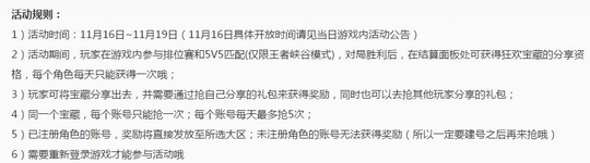 最后,活动时间,11月16日至11月19日,各大区逐步开放。