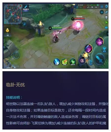 可以连队友或者对手,对应会增加或者减少被连者的攻击或者法强。如果链接对手还能造成伤害。