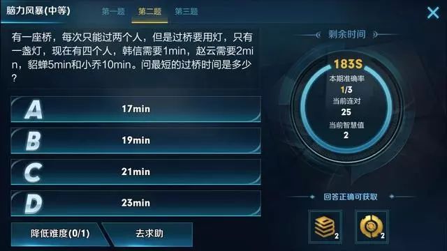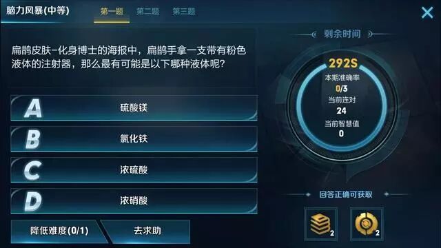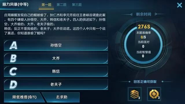 脑力风暴是最难的,后面的荣耀万事通一般考的是限量皮肤身上物件和语音!是可以百度到的。