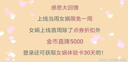 本次女娲上架的金币售价是13888金币,首周就直降5000,只要8888金币,而这种活动,通常是该英雄上架半年以上才会有的,图一的告示中我们可以看到,这次女娲上架,不仅仅如此,连续七天登陆游戏还可以免费获取30天的体验卡。