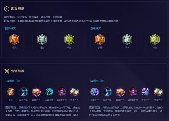 图上给出了两套铭文的搭配方案,一套四级一套五级的,天美想的还真是“周到”啊,出了两套铭文推荐,还有两套法师的装备推荐装,虽然系统推荐有和没有是一样的,但是咱们暂且给点“面子”,假装看上一看,反正小六已经看上了一眼。