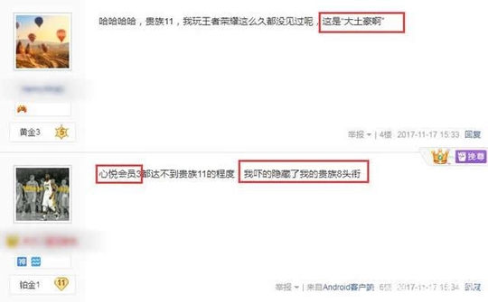 无数网友看到都表示笑了,无数网友嘲讽,果然是“大土豪啊”,从来没见过这么土豪的贵11呢,也有玩家称自己心悦会员3都达不到贵11呢,哈哈哈哈。