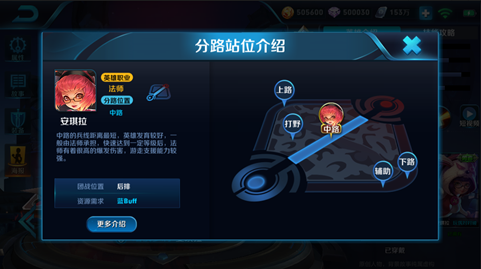 点击英雄“位置”按钮,可以看到更多该英雄分路站位的介绍,包括:分路位置、团战位置和资源需求。通过这些信息,我们希望帮助玩家更快地上手英雄,在对战中更好地去配合。