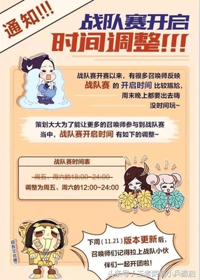 从11月21号起,战队赛的时间增加六个小时,从周五、周六的十二点延续到二十四点。一共十二个小时,这回,小伙伴们可以有更多的时间分配,在中午就可以打比赛,时间更充裕。小编想问一下,有多少玩家是每周都打满比赛的呀?