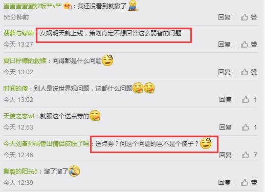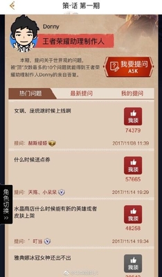 以至于玩家的提问,根本跟“世界观”毫不沾边。甚至在有些玩家看来,是些比较“睿智”的问题。第一个问题,“女娲、庞统啥时候上线啊”。按理说,还在用王者荣耀助手的玩家应该都知道,但还不算太肤浅。只能算有点懒。