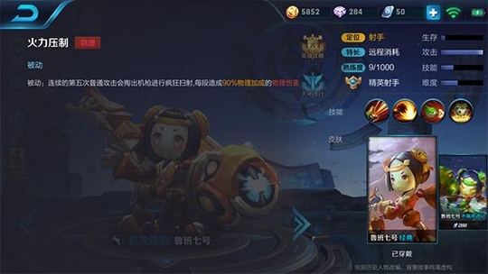 鲁班七号拥有很强的站桩输出能力,但自身的生存能力比较差,需要队友进行保护,只要鲁班七号能够获得足够的输出环境,就能以摧枯拉朽之势击败对手。