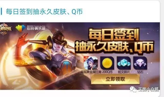 心悦俱乐部王者专区:累计签到七天,即可参与抽奖。从封面上来看,这奖励很丰富哦,居然还有200Q币的终极大奖,比李白的凤求凰还值钱。