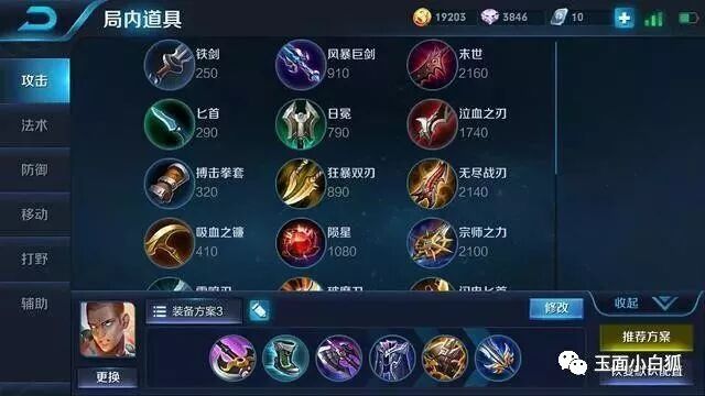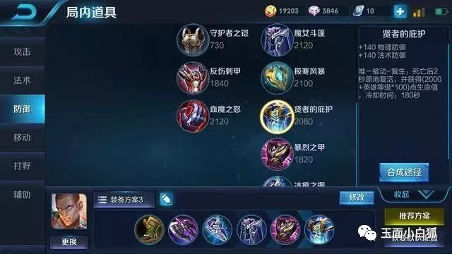 解析:半肉打野出装,由于达摩的被动会回血,所以达摩可以无伤打野,巡狩利斧提高清野效率,前中期一把暗影战斧足够一套秒人。魔女斗篷和不祥征兆提供生存能力,破军能把大招第二段效果最大化,收割能力更强,后期把打野刀换成复活甲,生存更强劲。