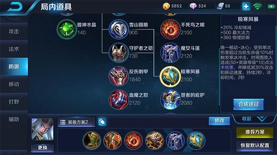 推荐理由:作为辅助的东皇太一主要担当的是坦克和控制的身份,因此出装上选择大量的坦克装备。作为辅助,对线一般射手居多,率先做出影忍之足,一方面增强东皇太一的物理防御能力,一方面有利于回城补给后快速回到线上;红莲斗篷提供高额的护甲和生命值,另外被动可以带来一定的法术伤害;不死鸟之眼是东皇太一的核心装备,除了法术防御和生命值的强化,被动所提供的回复效果能够大大提升东皇太一的续航能力、团战能力以及生存能力;不祥征兆可以给对手造成攻击速度、移动速度的降低,配合大招,更适合留人;魔女斗篷提供的高额法术防御和吸收伤害的护盾,是一件功能性极强的装备,护盾的加持可以用作骗取对方法师的技能;极寒风暴的冷却缩减让技能刷新时间更短,技能释放更频繁,蓝量的提升也可以避免没有蓝的尴尬局面。