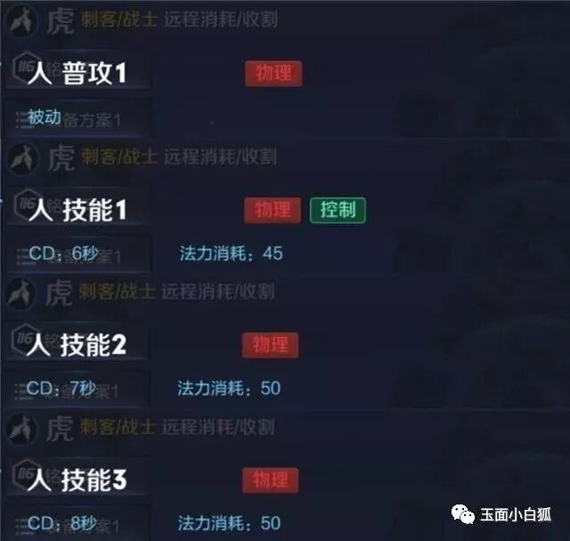 虎定位刺客/战士,主打远程消耗和收割,此定位类似于孙悟空,但却是远程消耗,可以说这个英雄应该不是主打近战。而从下面这技能技能来看,虎可能是双形态,可能他可以变成人,也可以变成虎,这信息直接联想到了豹女。在人形态的时候,可以释放超远程飞镖进行消耗,而变成虎的时候则是近战,会附加BUFF效果。(以上技能内容纯属猜测)