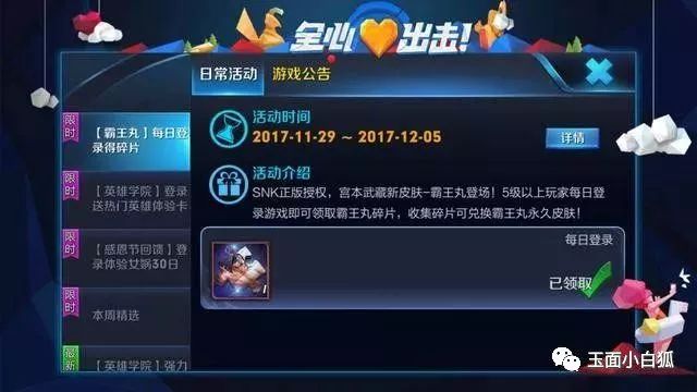 2、霸王丸碎片还能从每日登录中领取,最多可获得7个;