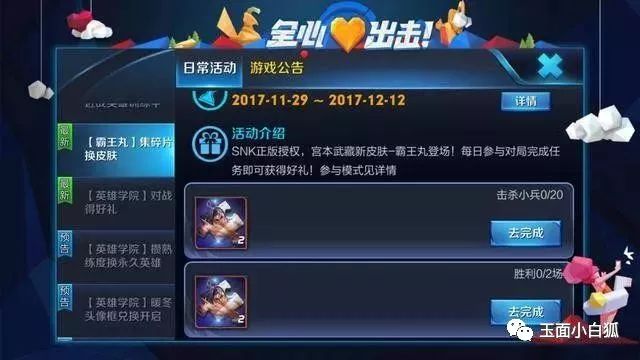 1、冬日好礼其实就是昨日给大家爆料的糖果屋,但是这个显然是改版了。剔除掉了永久英雄和永久皮肤,而放入奖励池的是:霸王丸碎片+英雄碎片+皮肤碎片+钻石+铭文+体验卡,这个活动在本周会开启(11月30日至12月4日)。