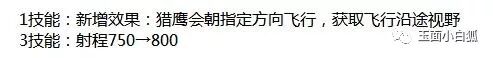 成吉思汗:射程增加50,对于生存和输出都有很大提升,同时1技能获得的视野范围将扩大,而且是全图飞鹰;