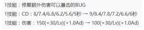达摩也是在上次体验服更新,取消了1技能的硬控击飞,而是改为减速软控,但这次体验服更新,达摩并未像铠一样,配置回滚,只是对减速软控加强了一丢丢,现在体验服的达摩,比之正式服的达摩,依然是削弱的,虽然他的回血能力得到了加强。