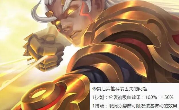 这次调整,1技能大削弱,吸血效果减半,分裂箭不能再触发装备被动(注意:主攻击目标不受影响),这样的调整,影响是很大的,比如说末世这件装备,削弱之前,后羿出了末世之后伤害就非常非常高了,但现在,感觉后羿的出装要发生一些改变啊!