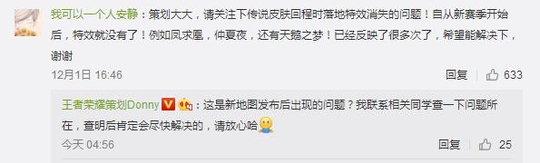 最后关羽传说皮肤回特效消失问题,凤求凰、仲夏夜之梦、天鹅之梦都存在这个BUG。