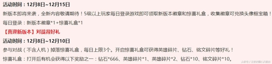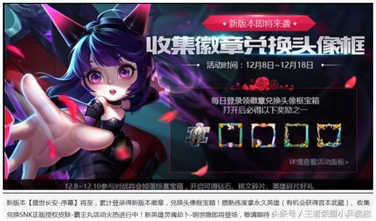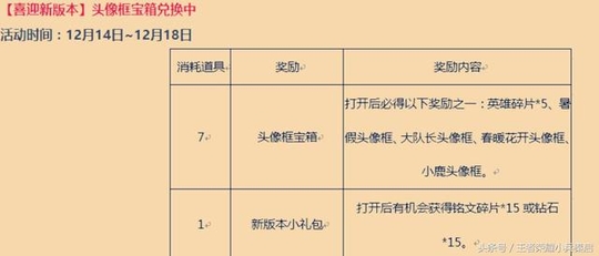 而这一次更新的活动内容就是收集道具,用来兑换头像框或者得到五枚英雄碎片。时间如下图所示。
