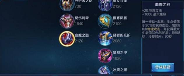 血魔之怒,非常适合当前版本强势的战士,暴烈+冰脉+血魔的30%最大血量护盾足够抵抗一波伤害了。甚至铠、达摩、杨戬这类的英雄还能在杀一个人。