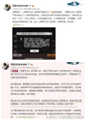 昨日,荒野行动微博正式宣布游戏注册用户数突破一亿,这也让《荒野行动》从众多吃鸡手游中脱颖而出。趁着这个机会,官方同时声明,之后将进行全天二十四小时监测外挂,并在游戏中加入举报系统,为净化游戏赴汤蹈火。