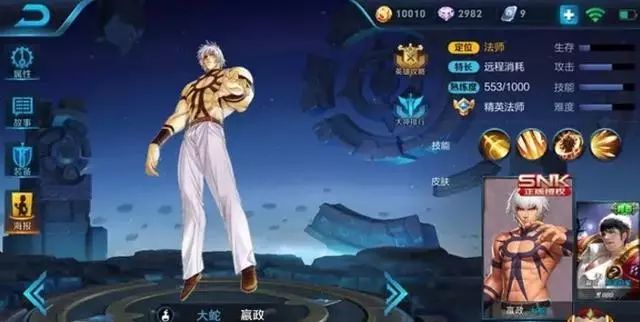 SNK本来就是TX爸爸的资源,在刚刚推出的宫本武藏的霸王丸皮肤,受到一致好评,不如可以再出新作,嬴政作为S9的一线中单,给个大蛇的皮肤,形象和气质都很搭配,可以考虑哦。