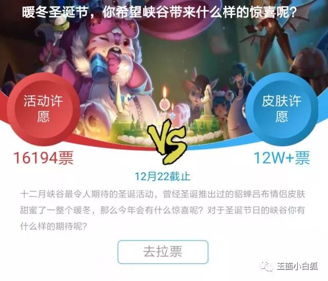 圣诞节许愿活动有两个选项,第一个是活动许愿,第二个是皮肤许愿。活动许愿也就是推出相关福利活动,比如来一点免费的皮肤碎片。皮肤许愿也就是圣诞恋歌之类的皮肤活动,可能会推出蔡文姬圣诞节新皮肤,也可能会像之前五元抽圣诞恋歌那样?脸黑的玩家,这种概率活动少碰为佳。