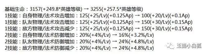 明世隐:自身血量大幅提升,有助于吸收更多伤害,偏向坦克定位。。1/2技能对自身的增益效果削弱,但是对队友的增益效果增加,对敌方的减益效果增加。这个明世隐调整后,前期不如之前强势,但是后期却更强大了,从之前的法师/辅助转型辅助/坦克,相信以后还会有更大的调整。